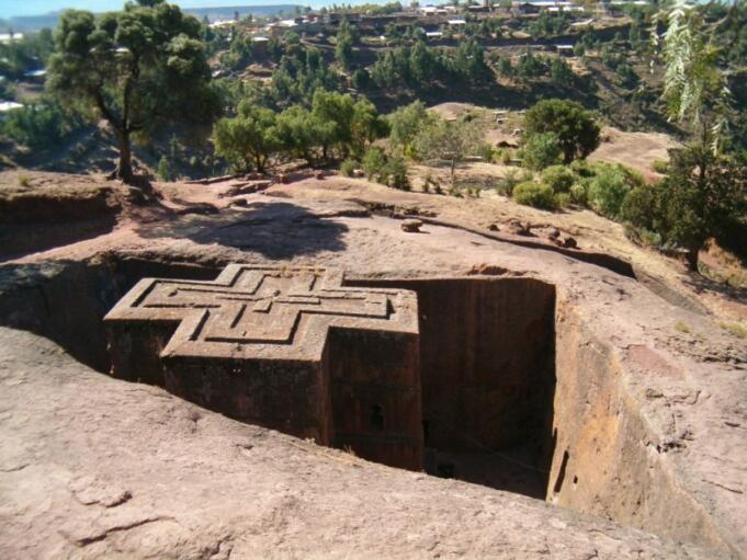 Di daerah pegunungan di jantung Ethiopia, 645 km dari Addis Ababa, sebelas gereja monolitik abad pertengahan telah dibangun diukir dari batu. Bangunan mereka dikaitkan dengan Raja Lalibela di abad ke-12 sebuah ‘Yerusalem Baru’, setelah penaklukan Muslim dihentikan ziarah Kristen ke Tanah Suci. Lalibela berkembang setelah penurunan Kekaisaran Aksum.